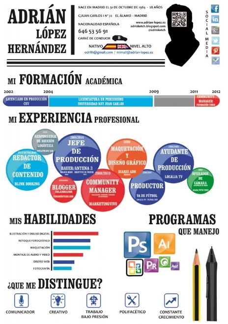 El currículum infografía es la adaptación del currículum a un formato muy visual, esquemático y gráfico.
