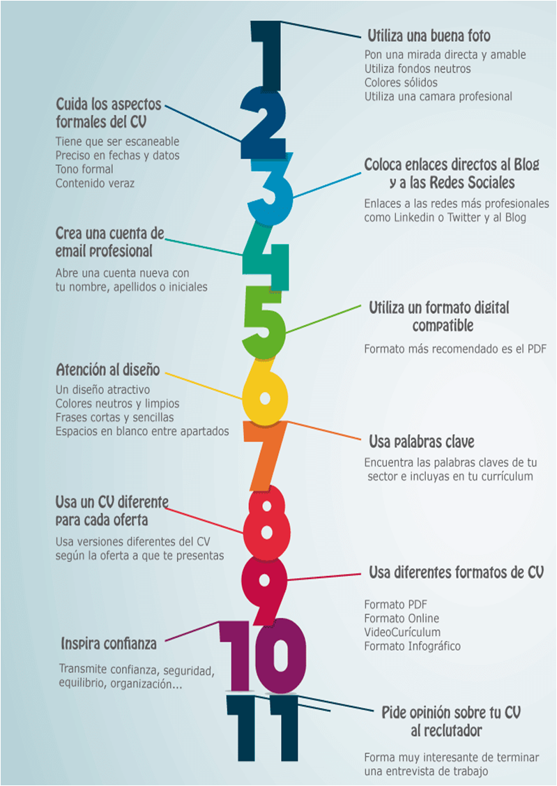 - Adapta el currículum a cada oferta a la que te presentes.